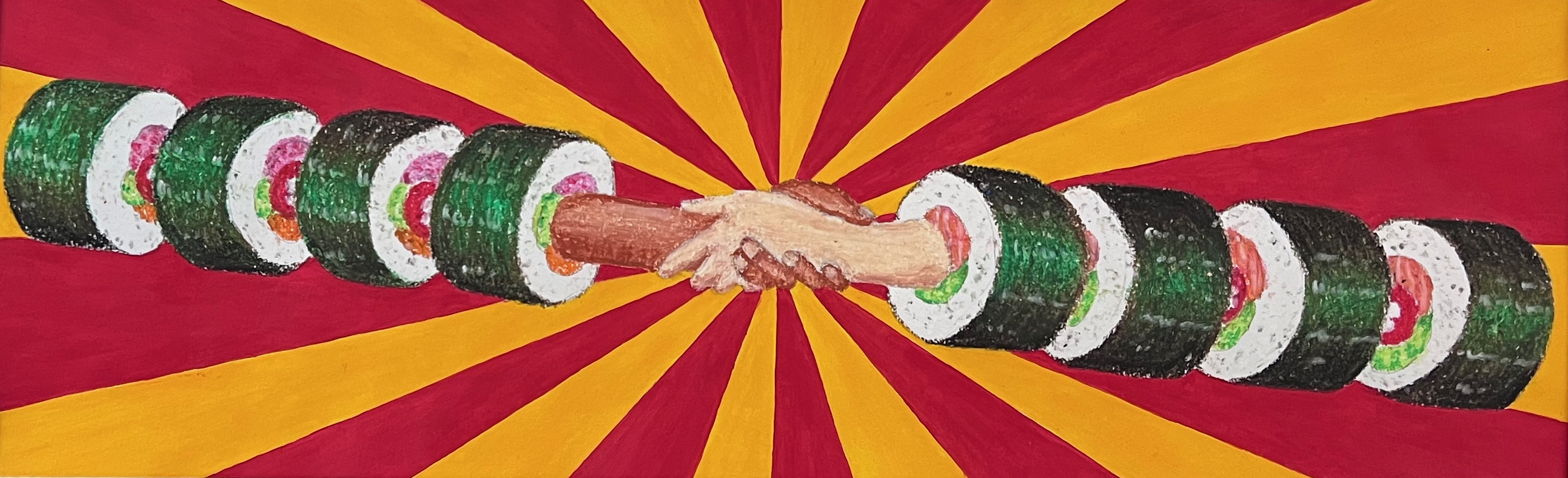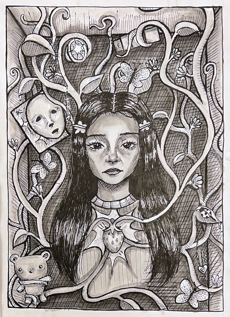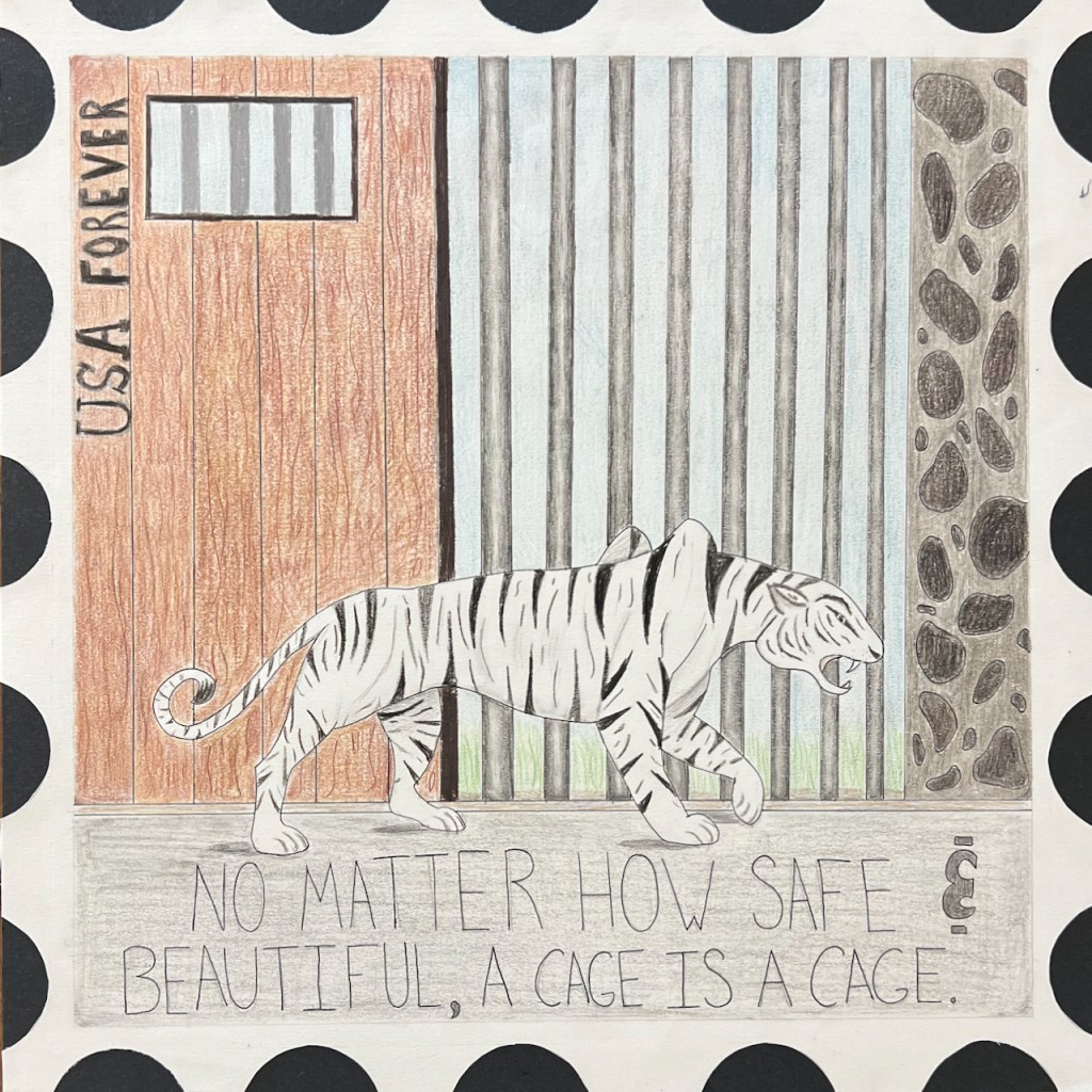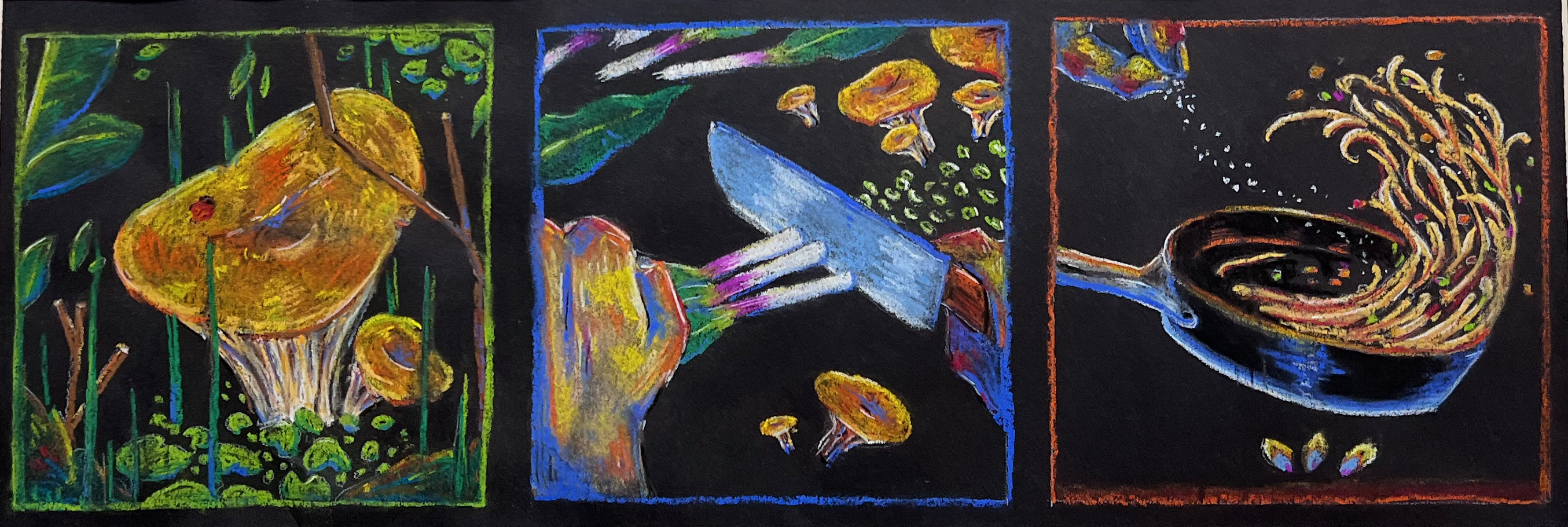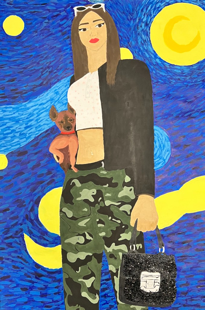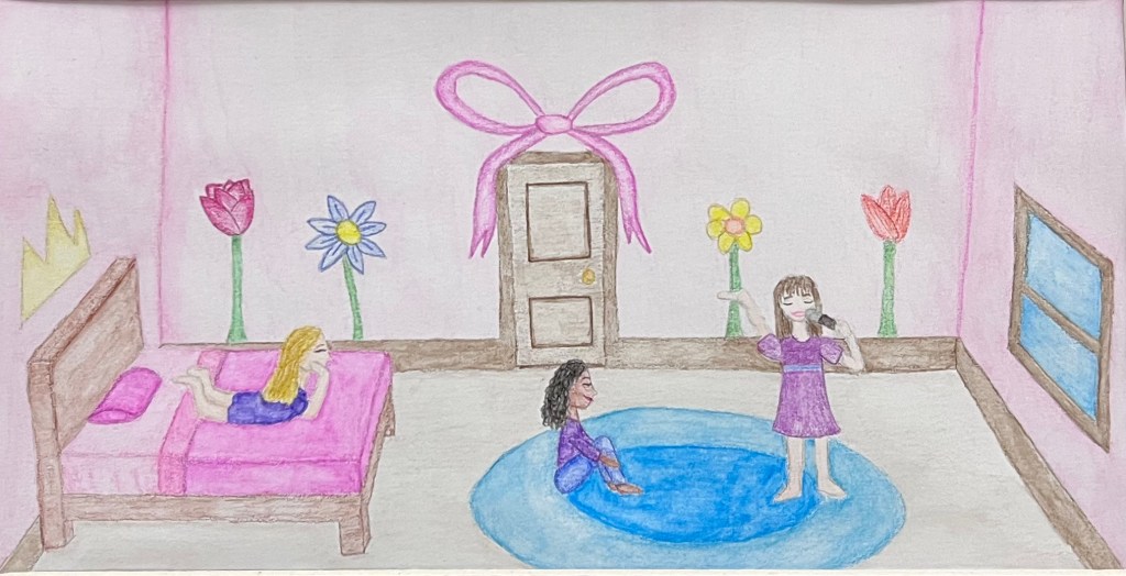 She also has experience in movie set dressing, including the Oscar-winning “Peter and the Wolf, “where she did detailed set work with other fine artists using many different media.