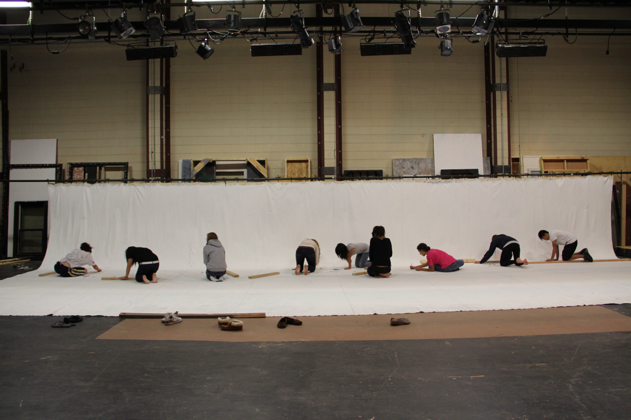 Drawing Intensive and Drawing/Painting I art students began drawing out Eng’s sketch for North High’s Les Miserables play in November. A grid was created to breakdown the composition of the sketch. As well as having the composition being cut to sections, which are assigned a numbering system, A1, A2, A3, etc. Each student was given a specific section to work individually, but also to collaborate with the person to the left and right to make sure everything is lining up.
