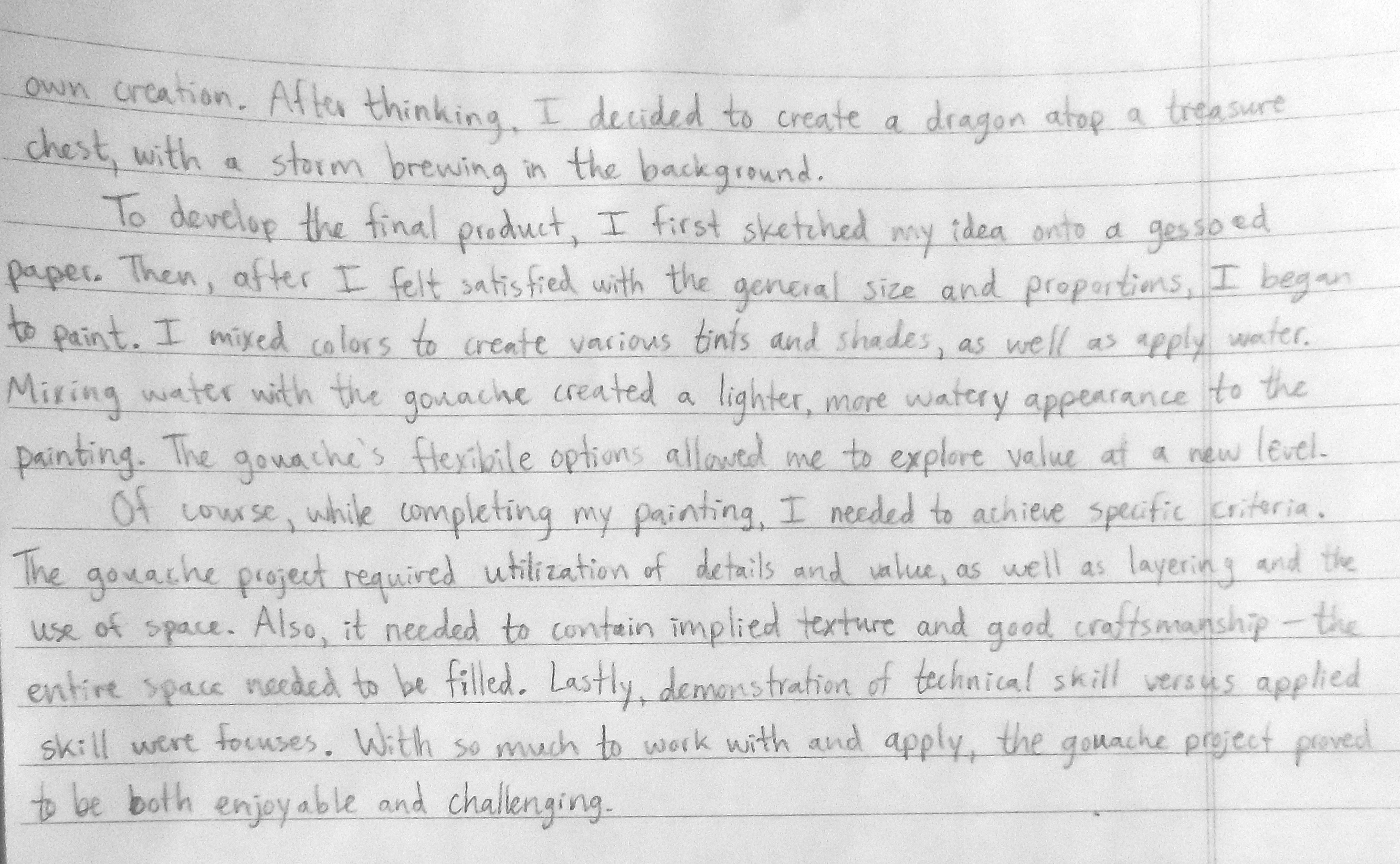 - Processes and techniques (what you had to do to make the art piece)