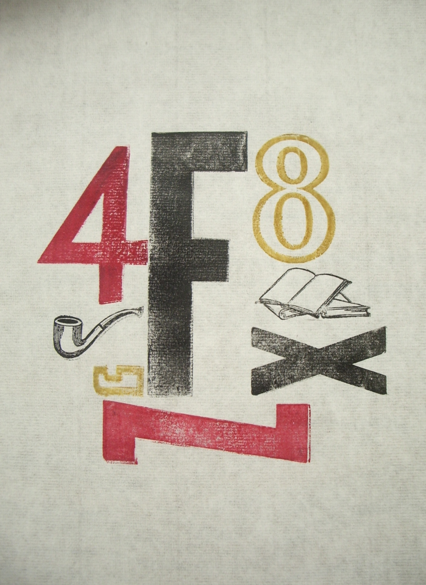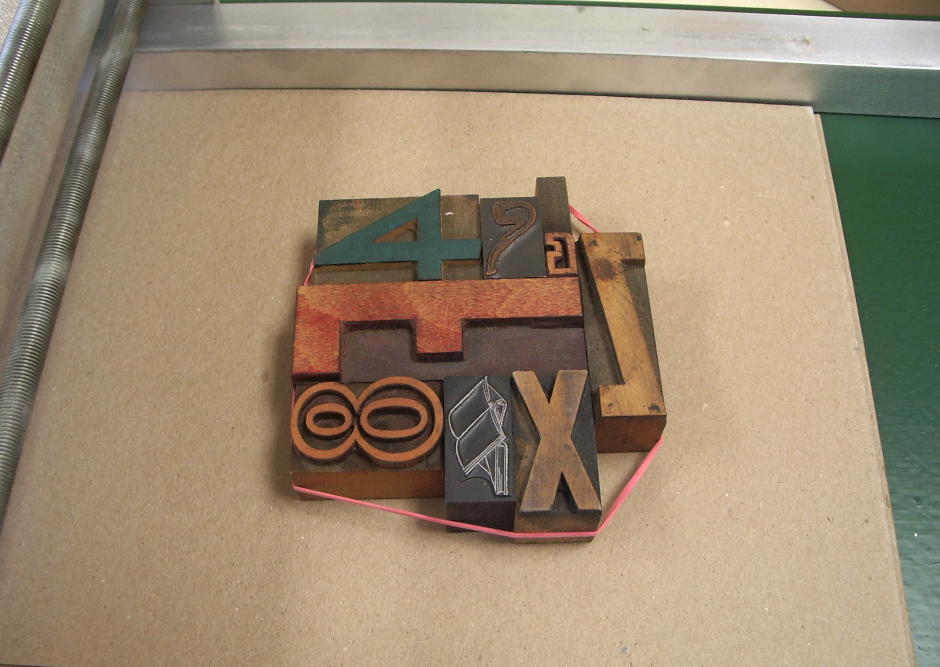 Mel also used her backpack press to create this 3-color letterpress print. In a true letterpress studio, the printer would use what’s called a lock-up to secure his or her blocks and cuts. It’s amazing what rubber bands can do in a pinch!
