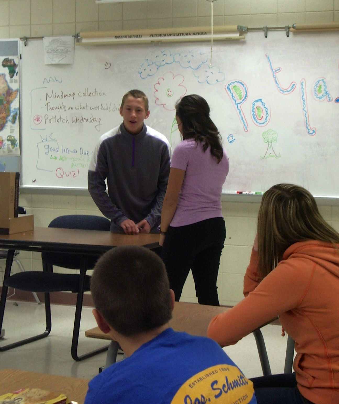 What a great week! Artist in Residence Mel Kolstad was able to hang out with Amy Jarvis, who came to visit before her talk with the Art Foundations kids next week in Mr J’s class, and they were invited back to Dr. Michels’ class for a potlatch, where the students celebrated their successes with food, singing and magic!