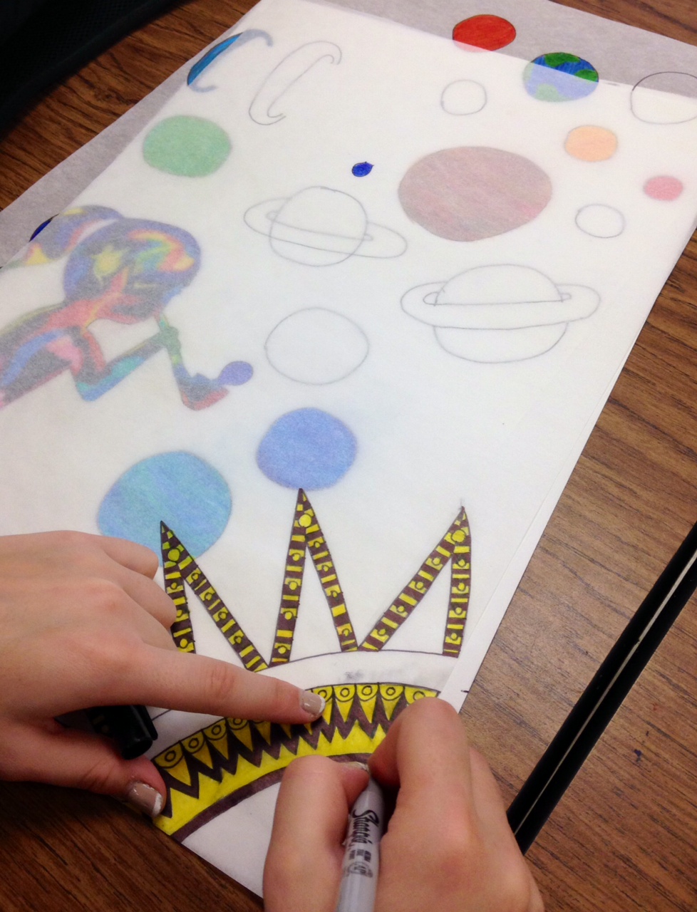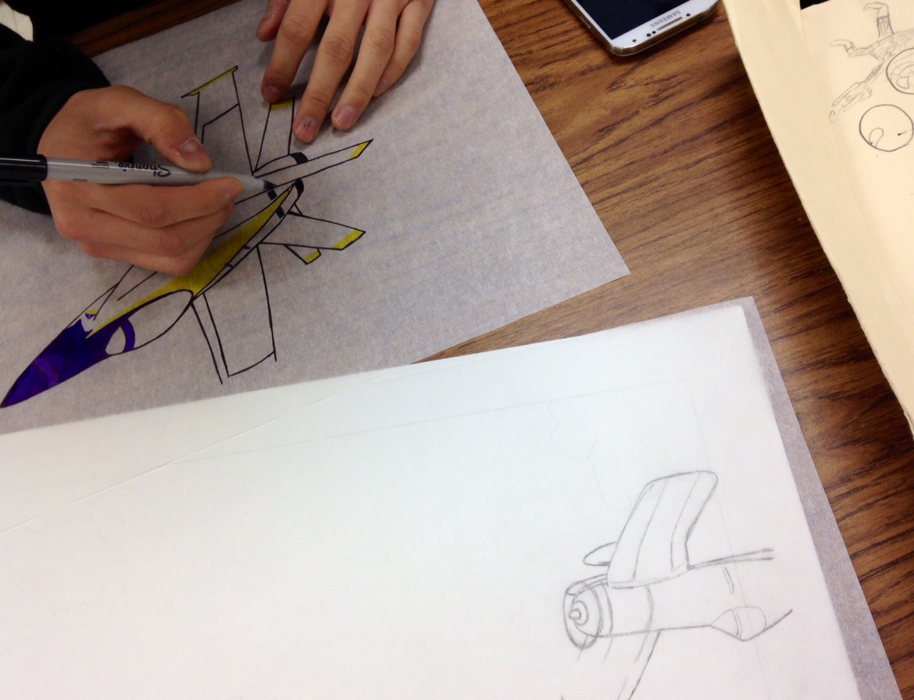 A drawing typically captures a moment in time; a still, motionless instant. For their current project, Drawing Intensive students are creating drawings that show change or transformation. By utilizing layers of tracing paper and a drawing medium(s) of their choice, the students are being challenged to create works of art that illustrate “The Passing of Time.”