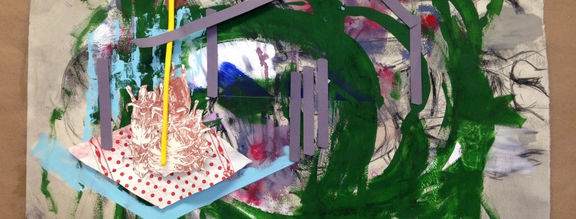 If you would like to see some of my work in person, I have a couple small collages and drawings hanging in the display case outside of the art room; feel free to take a look!