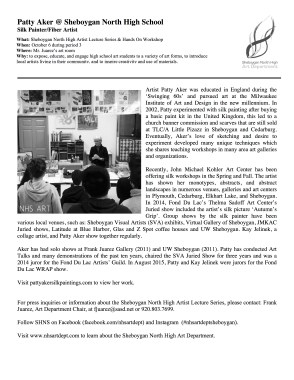 SHNS Artist Lecture TEMPLATE Next Published October 7, 2015 at 2550 × 3300 in Artist Lecture Series: Silk Painting with artist, Patty Aker, at Sheboygan North High School