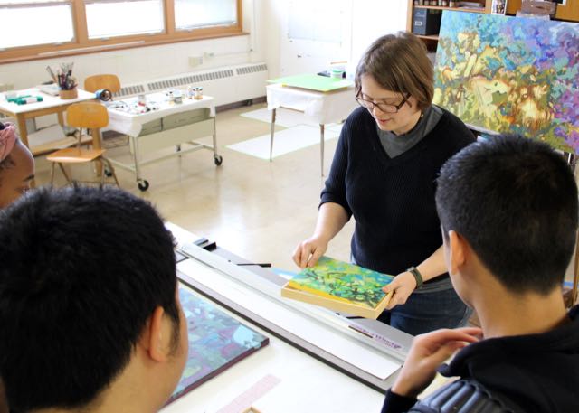 IMG_9916 Previous Next Published October 29, 2015 at 640 × 457 in Drawing Painting I students visit Liz, artist in residence at North High