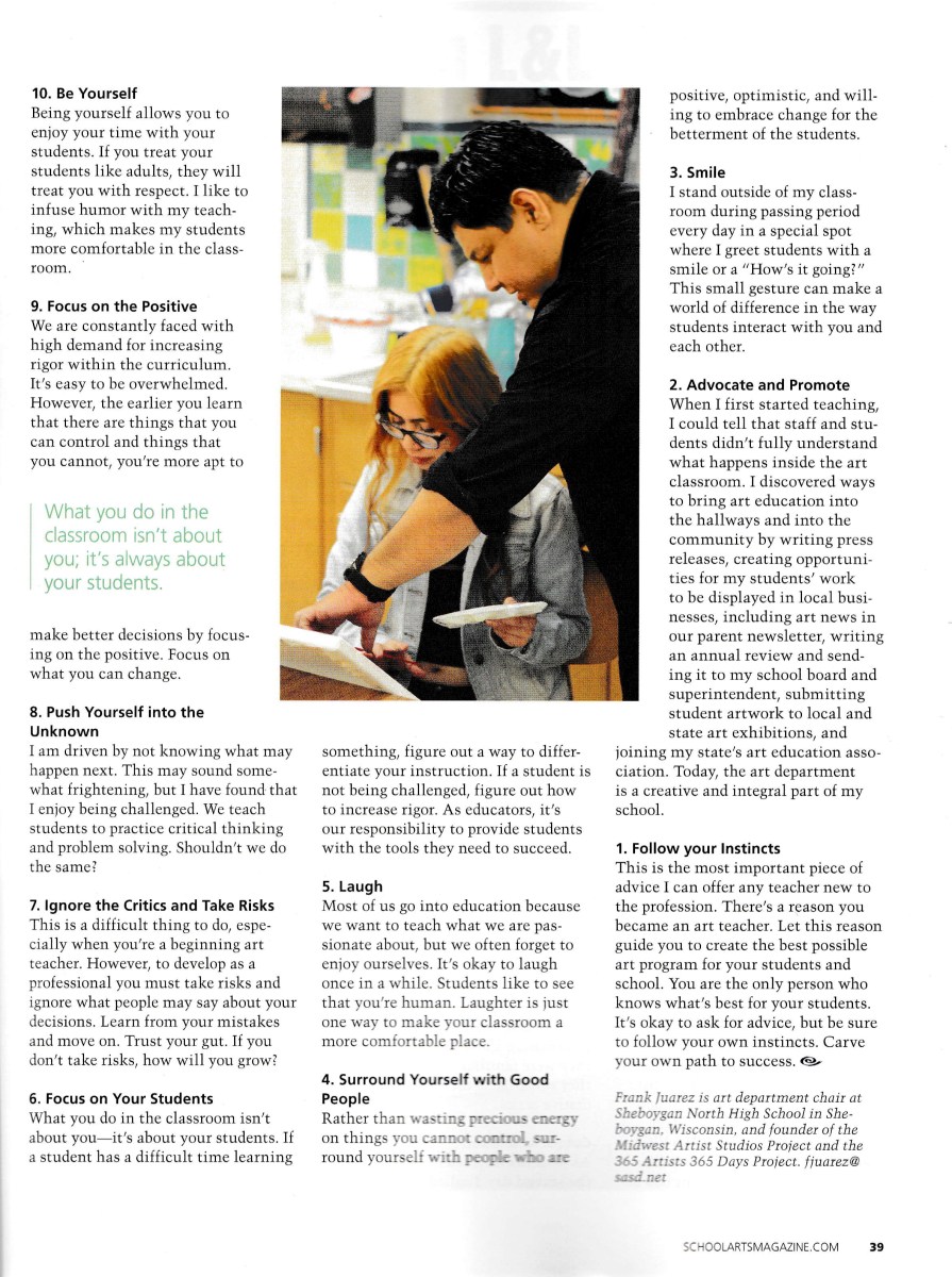 10tips_FrankJuarezC Previous Published March 17, 2016 at 2367 × 3174 in 10 Tips for New Art Teachers. Written by Mr. Juarez