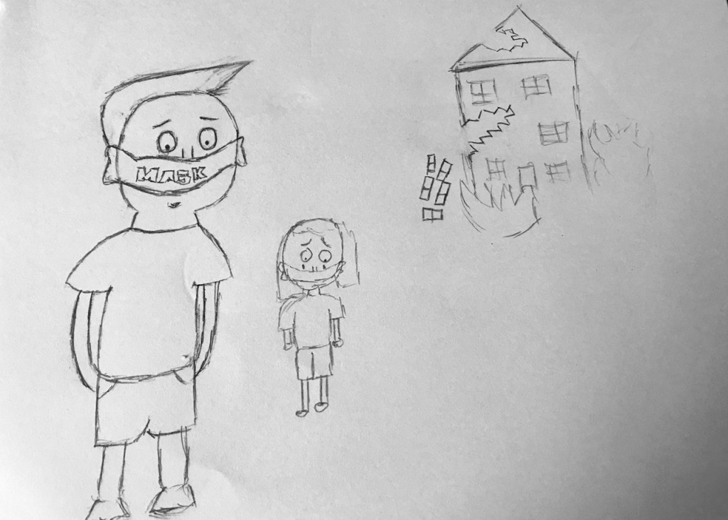 The purpose of the artwork I created was because when we were being quarantined I realized that everyone must wear a mask when they go outside or go shopping. I heard that kids at age 1-9 can’t go shopping because they might get infected by other people in the stores.