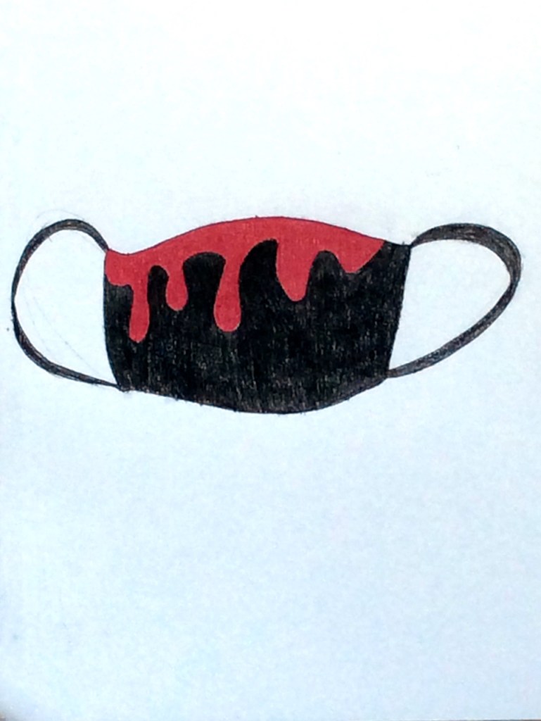I decided to draw a doctor with a mask on. I wanted to do this because doctors are so important in this crisis. They are saving lives and I wanted to represent that in my drawing. They are heroes. I added paint on the mask to make it pop and to represent how important it is to be safe and to not get infected. On the background I painted it a dark red color because the coronavirus is that color and I wanted to have a dramatic feel. Finally, the doctor is in a side view because it makes her look determined and ready to face the disease.