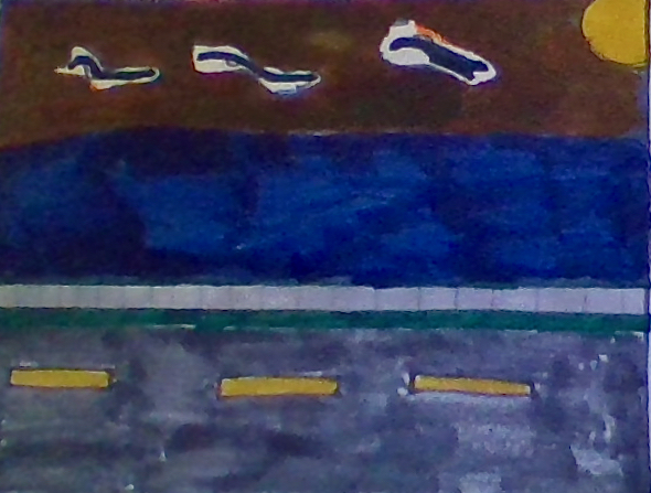“Muffled”, which is a parody of Edvard Munich’s infamous painting, “The Scream” reflects my feelings during the coronavirus pandemic. Each day this pandemic goes on I feel like I want to scream. I tried to capture this feeling in the painting. The man’s mask which covers his scream represents how China covered up the virus and how trapped we all feel in isolation from others. The river behind the man is polluted and filled with radioactive waste and the bank on the left is full of graves. The man wants to scream out against all the injustice that is being done to the world and to himself but can’t… all because of the mask.