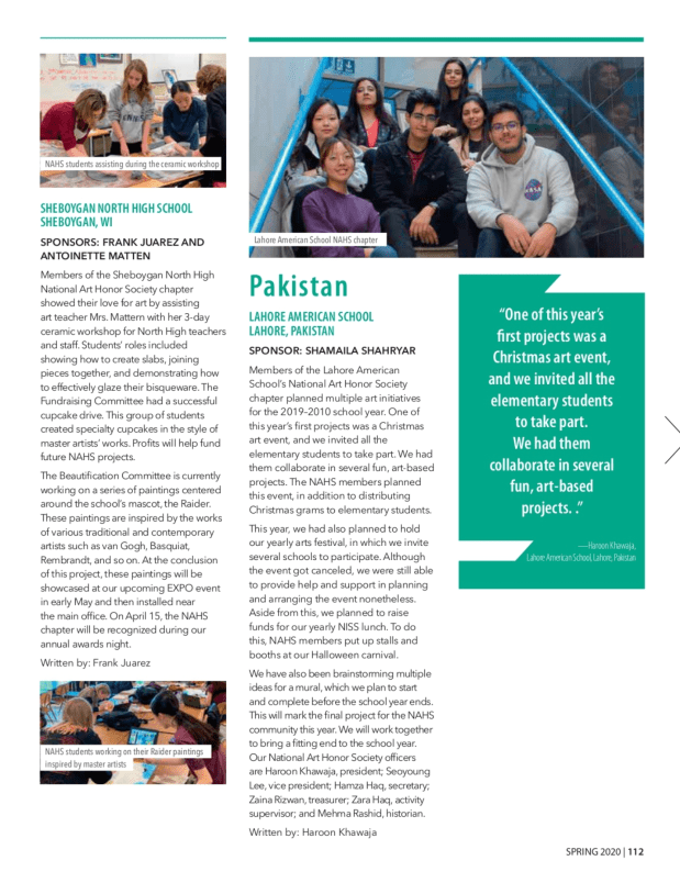 Hot off the press – the NAHS News featuring our report from Sheboygan North High School Art Department. Being a NAHS Chapter has made a difference on how our students view and share the world of art with their fellow students, teachers, staff, administration, and district.