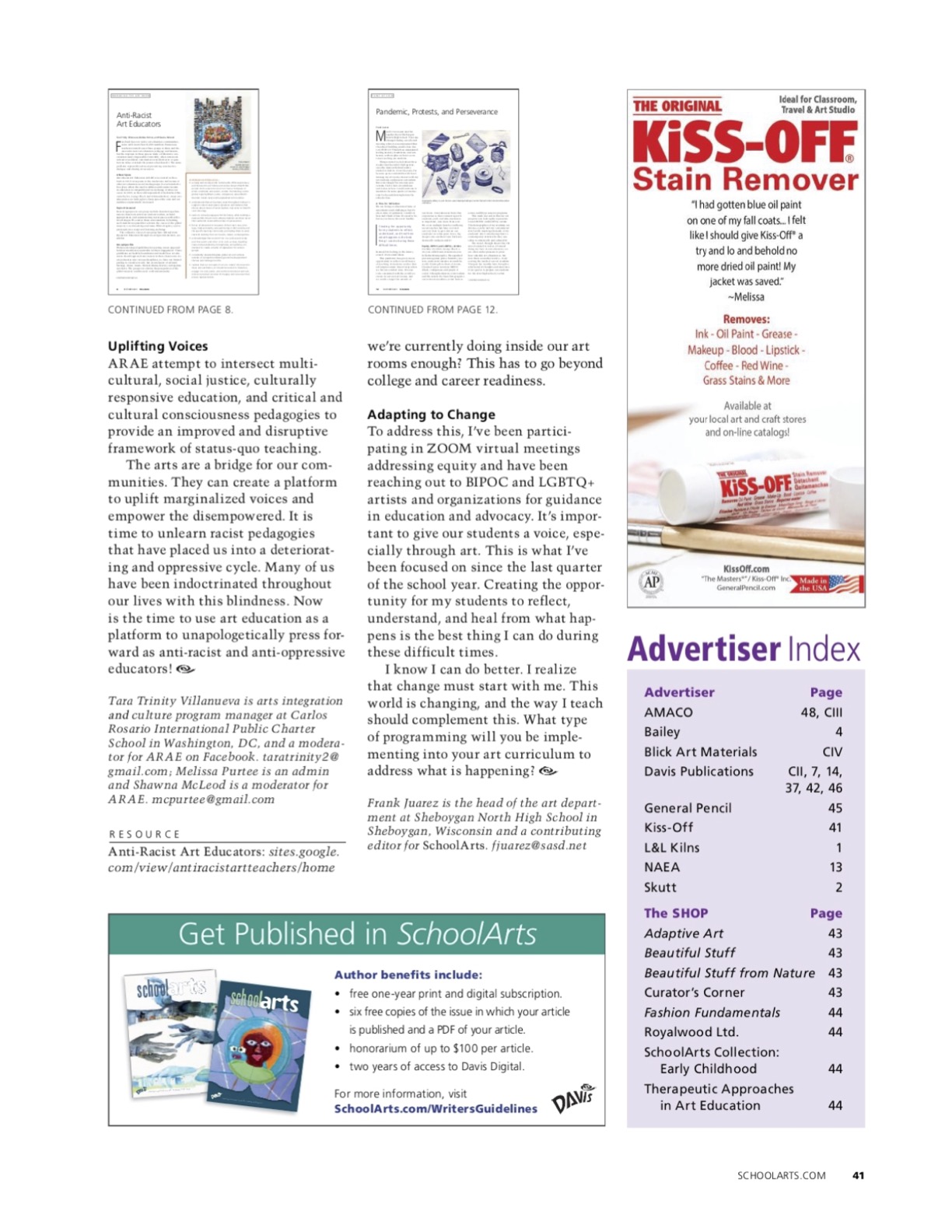 SchoolArts is a national art education magazine committed to promoting excellence, advocacy, and professional support for educators in the visual arts.