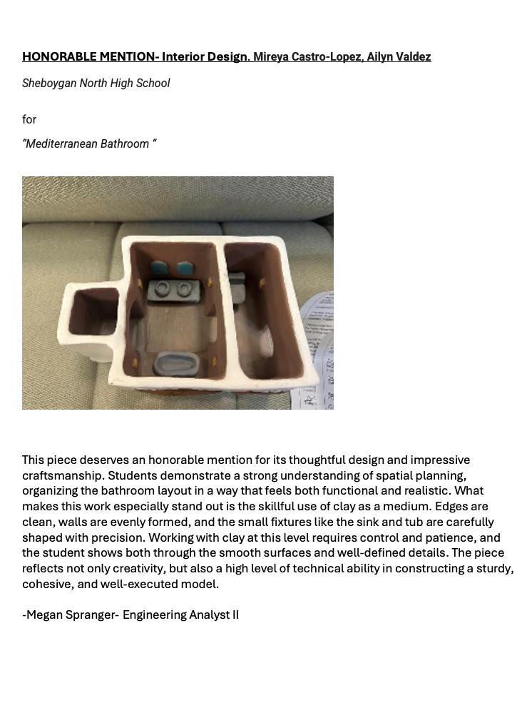 • Ailyn Valdez and Mireya Castro-Lopez, Honorable Mention, Interior Design (Sheboygan North High School)