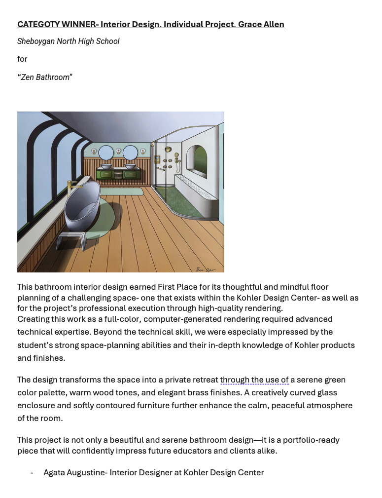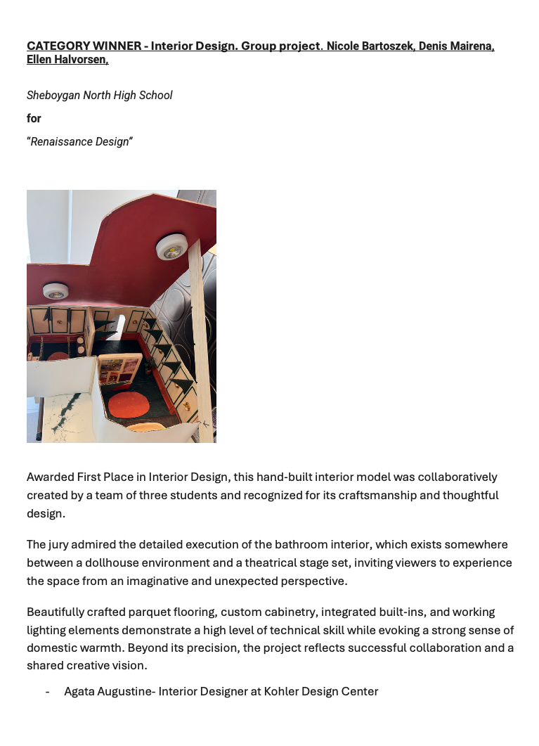 • Grace Allen, 1st Place, Interior Design (Sheboygan North High School)