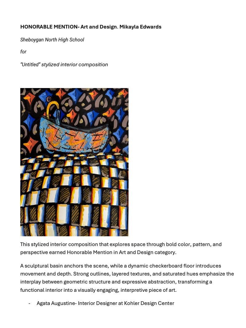 • Mikayla Edwards, Honorable Mention, Art & Design (Sheboygan North High School)