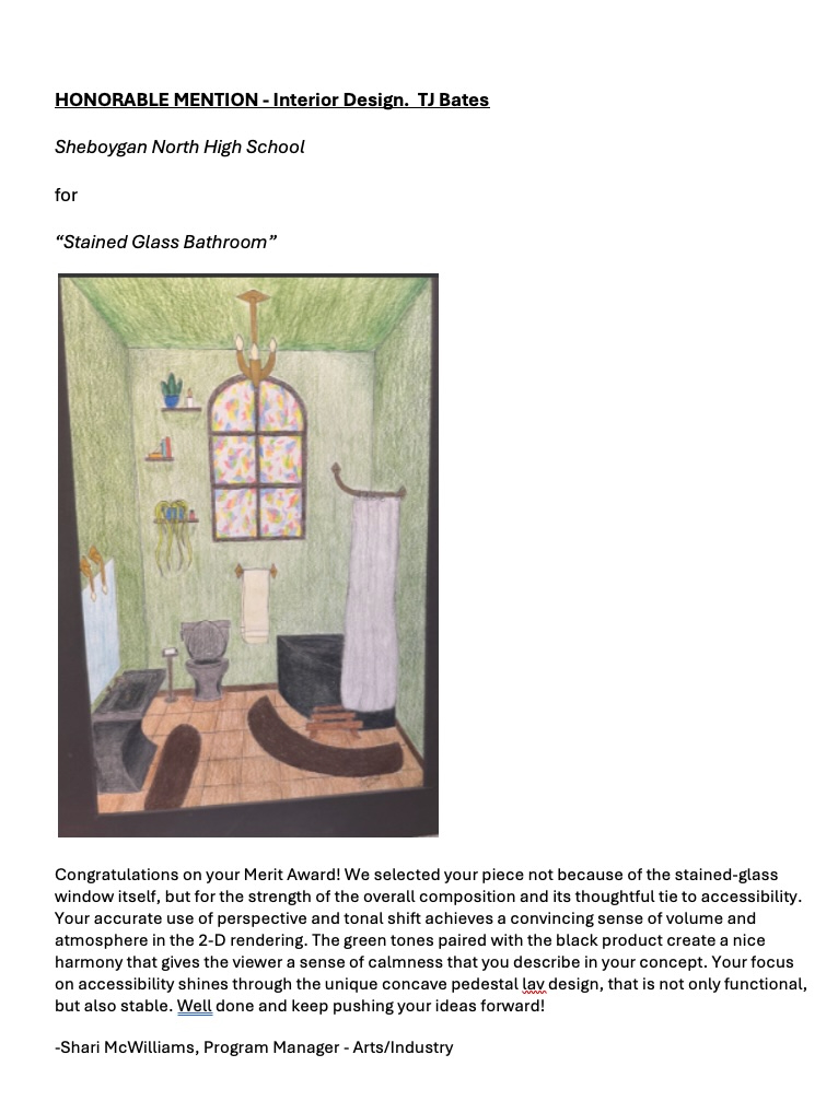 • TJ Bates, Merit Award, Interior Design (Sheboygan North High School)